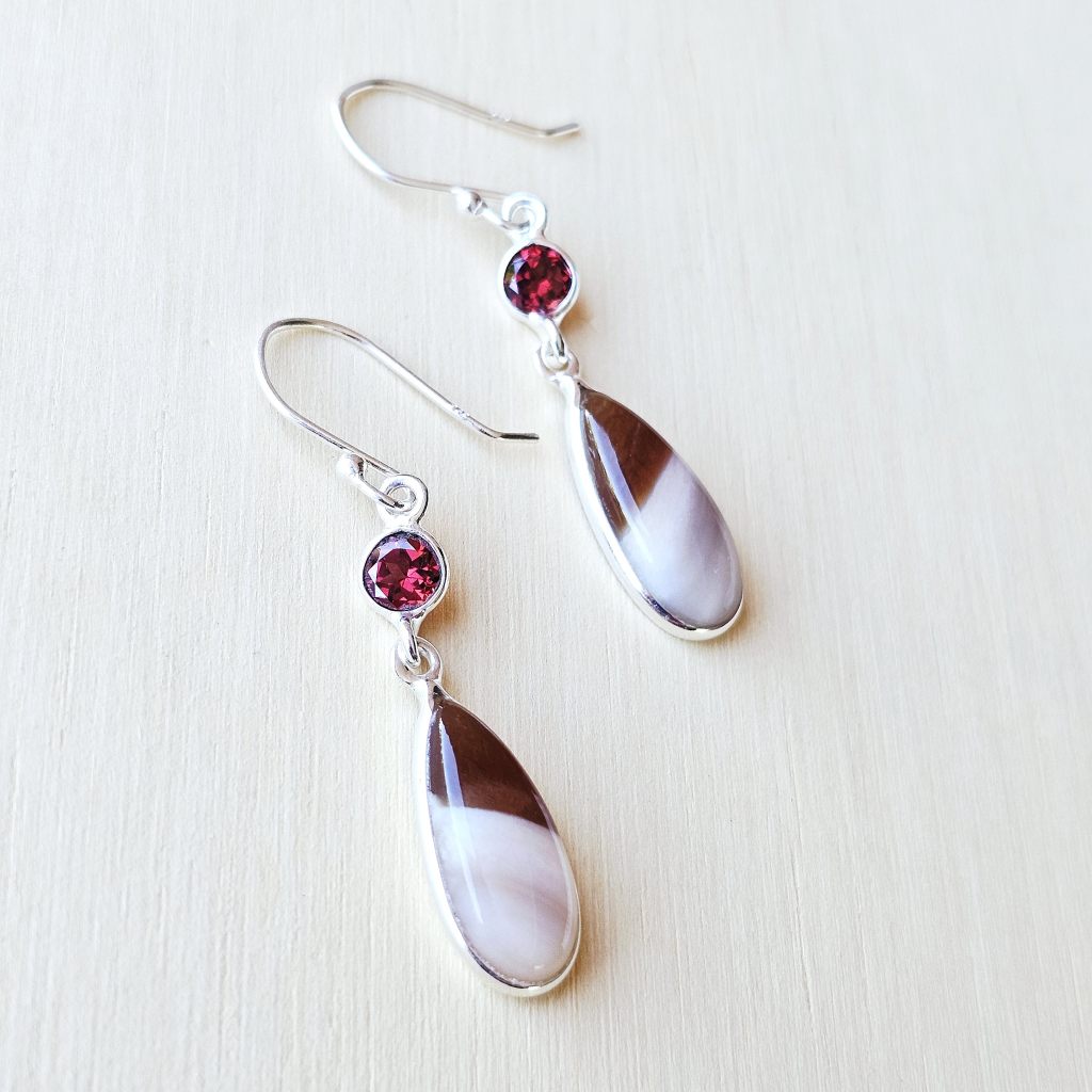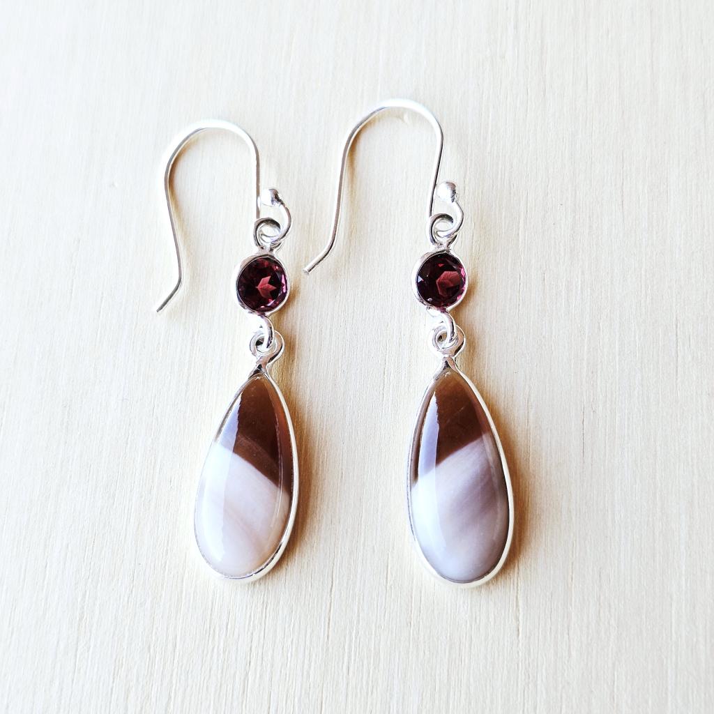 Petrified Wood & Faceted Garnet Earrings | Ancient Grace