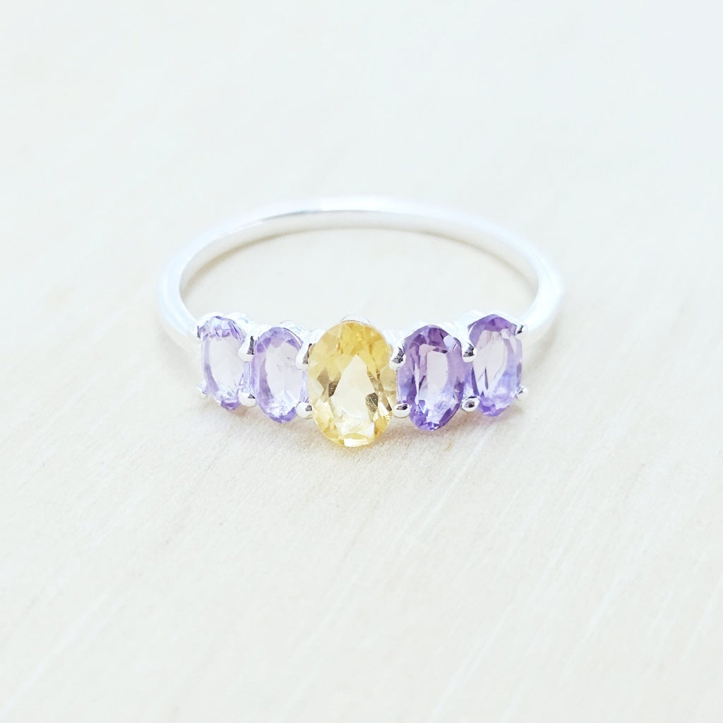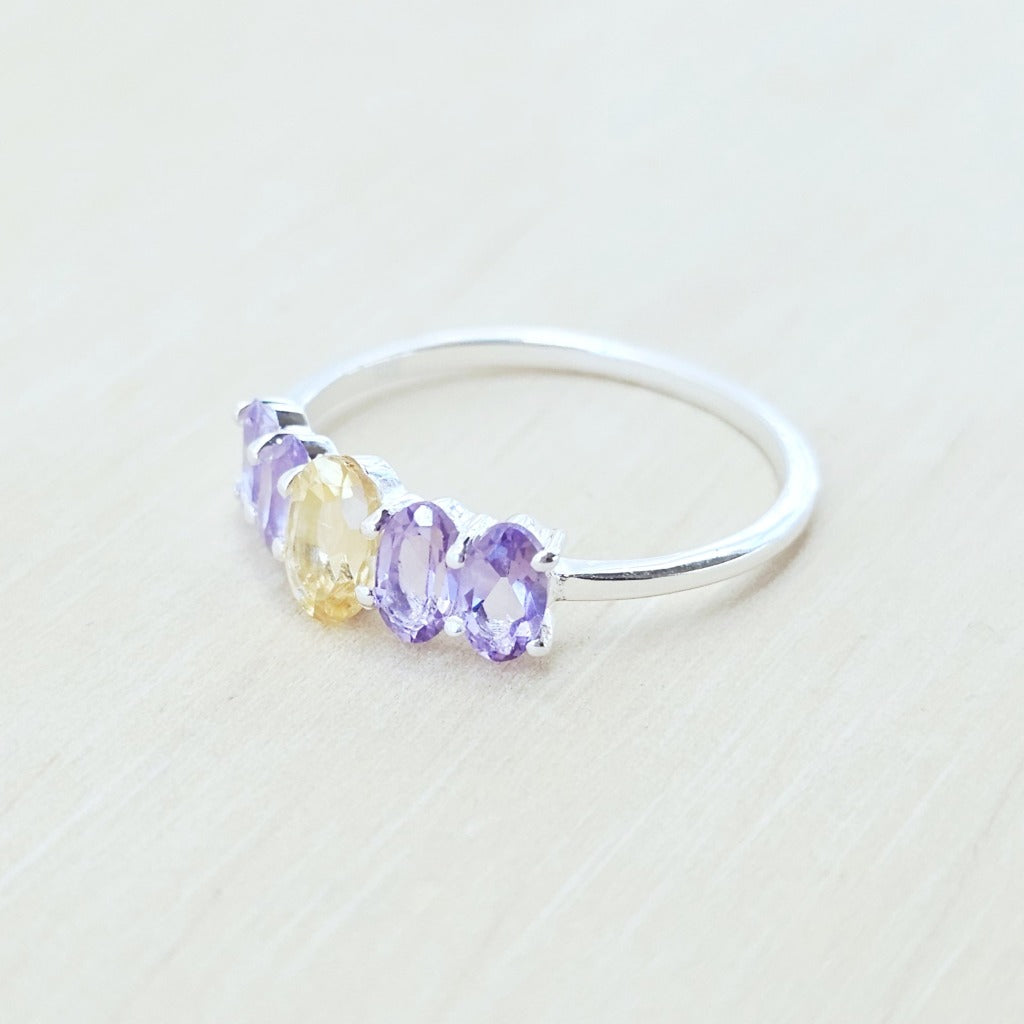 Amethyst & Citrine Faceted Ring | Dual Clarity
