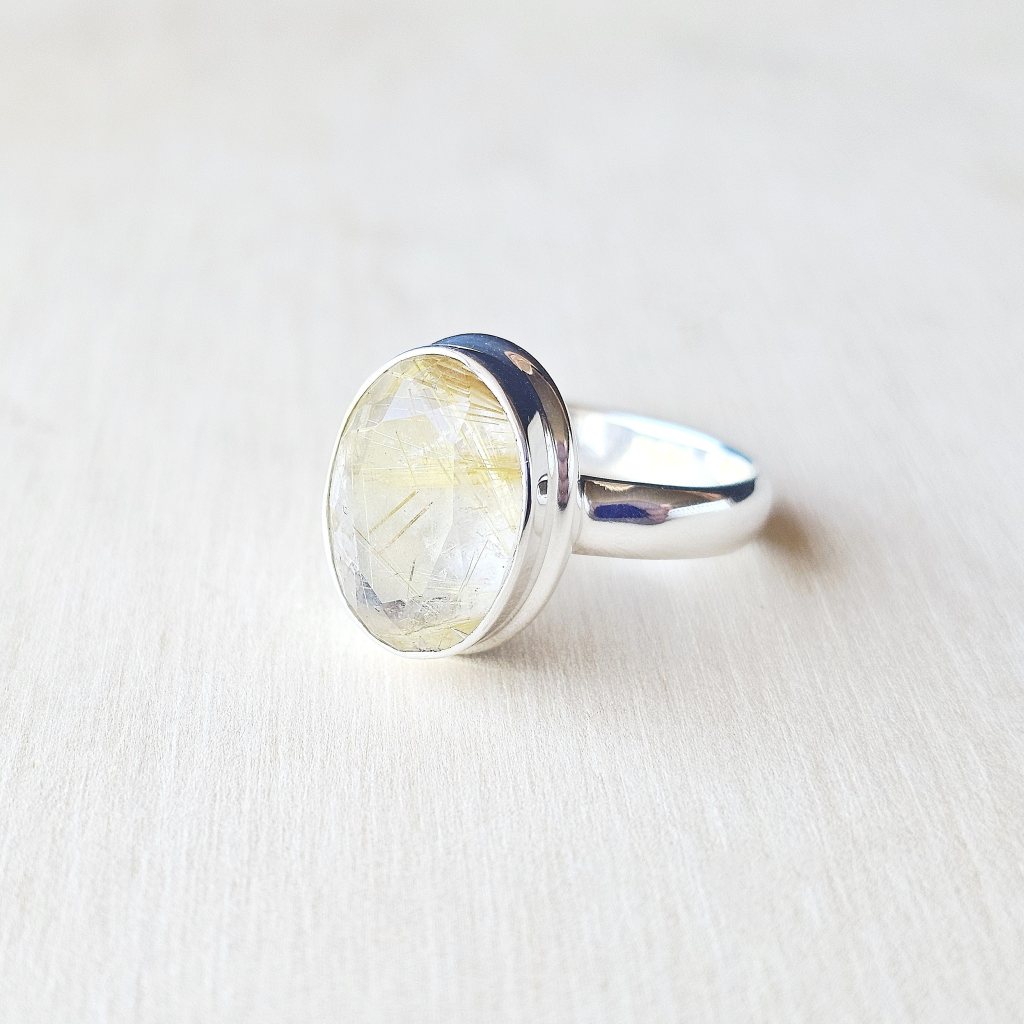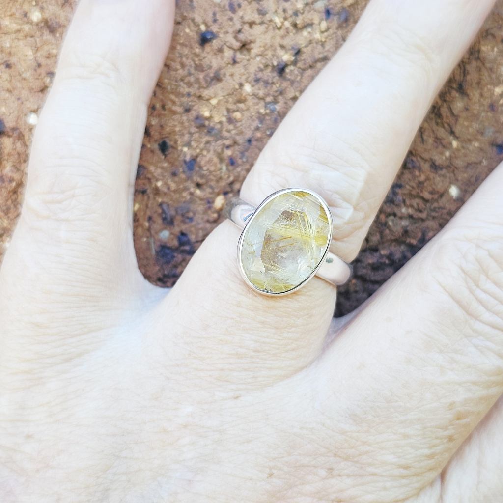 Faceted Golden Rutile Ring | Golden Current