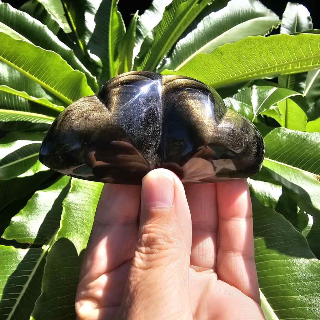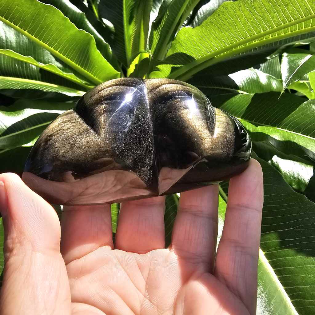 Gold Sheen Obsidians energy resonates with the heart's wisdom and energy, bringing stability and grounding to the heart centre. It acts as a gentle guardian, shielding us from negative influences and embracing us with an aura of love and protection.