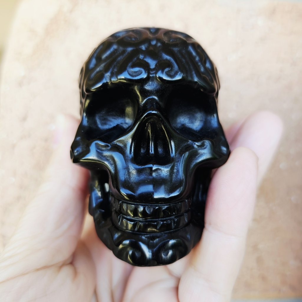 Black Obsidian Skulls | The Ancestral Etched Guardian