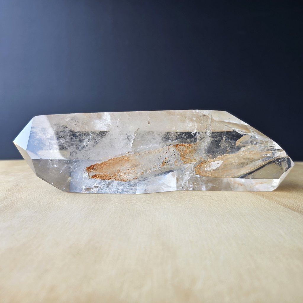 Striking in scale and refined in form, Spirit Column is a large naturally double-terminated quartz crystal with exceptional transparency. Its elongated body feels like a fragment of something far greater, almost perfectly preserved with both terminations intact which is a rare expression of nature’s geometry.