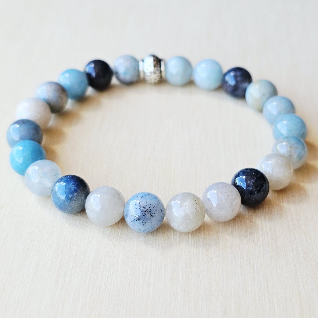 Working with the Third Eye and Crown Chakras, this bracelet supports intuitive awareness, thoughtful reflection, and a sense of spacious clarity. Its energy is subtle yet steady, ideal for moments of contemplation, meditation, or focused work where calm presence matters more than effort.