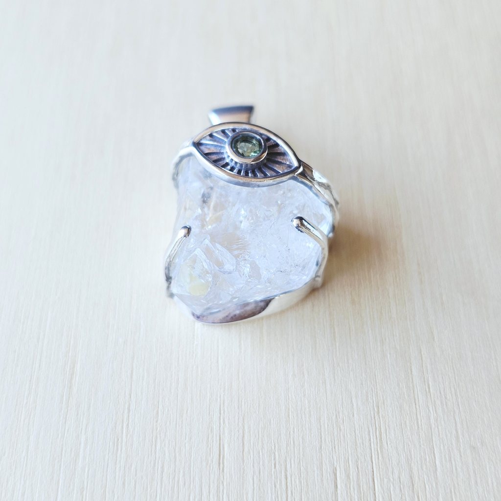 When combined, Herkimer Diamond and Moldavite create a powerful synergy. Herkimer’s grounding clarity complements Moldavite’s transformational energy, making this pendant a beacon of light for those ready to embark on a journey of ascension. Together, they encourage you to release limiting patterns, embrace your authentic path, and connect deeply with your inner and outer universes.