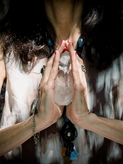 Hold your chosen crystal in your hand and bring to your heart centre or your third eye. Connect to your crystal with your mind and ask it to be in service to you for your highest good.