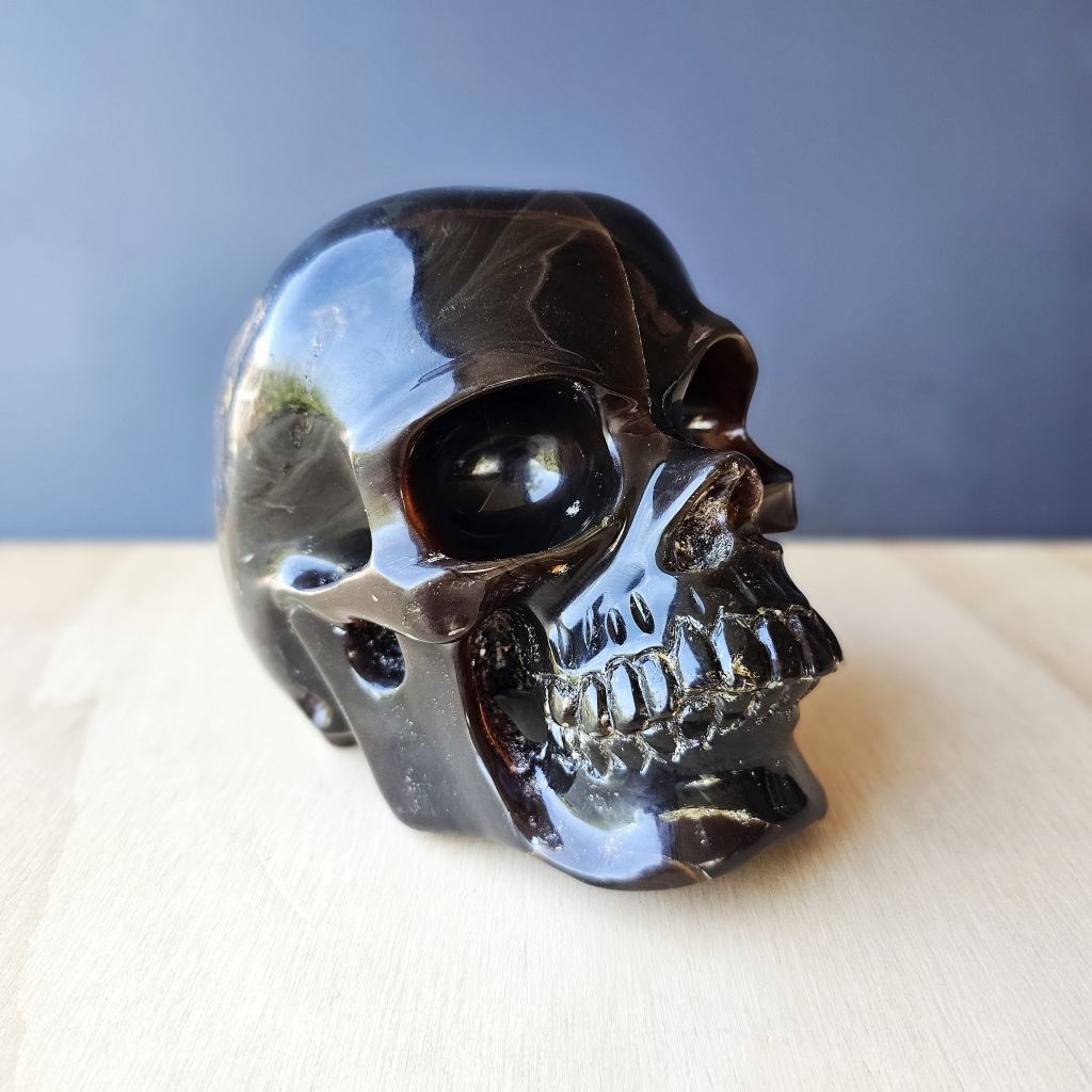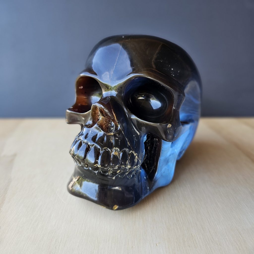 Blue Amber Skull Carving | The Keeper Of Memories